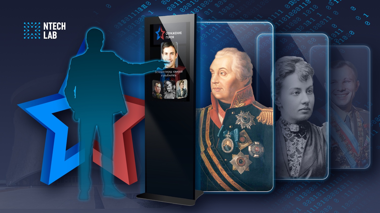 В год 80-летия Победы в Великой Отечественной войне технологический партнер Госкорпорации Ростех, компания NtechLab, запустила масштабный всероссийский патриотический проект «Отражение героя». В городах страны установлены специальные инфостелы с камерой и экраном, которые с помощью отечественной системы видеоаналитики на основе искусственного интеллекта находят для всех желающих максимально похожих на них исторических личностей.