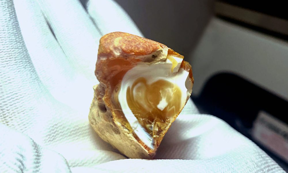 На Калининградском комбинате добыт камень, в котором основные виды янтаря сформировали рисунок, похожий на сердце
