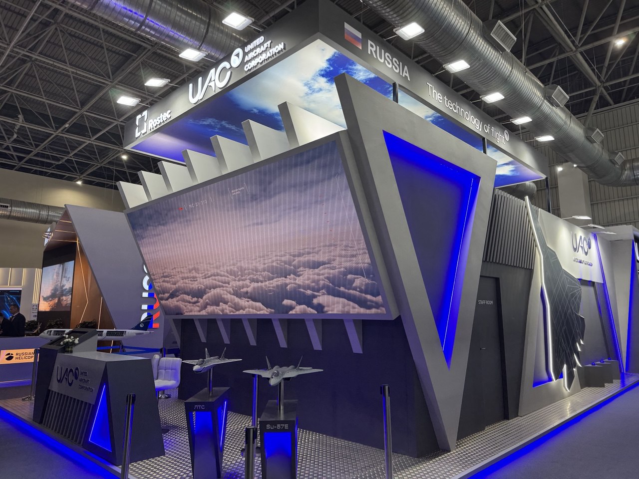В экспозиции ПАО «ОАК» представлены модели военной и гражданской авиатехники, в частности: